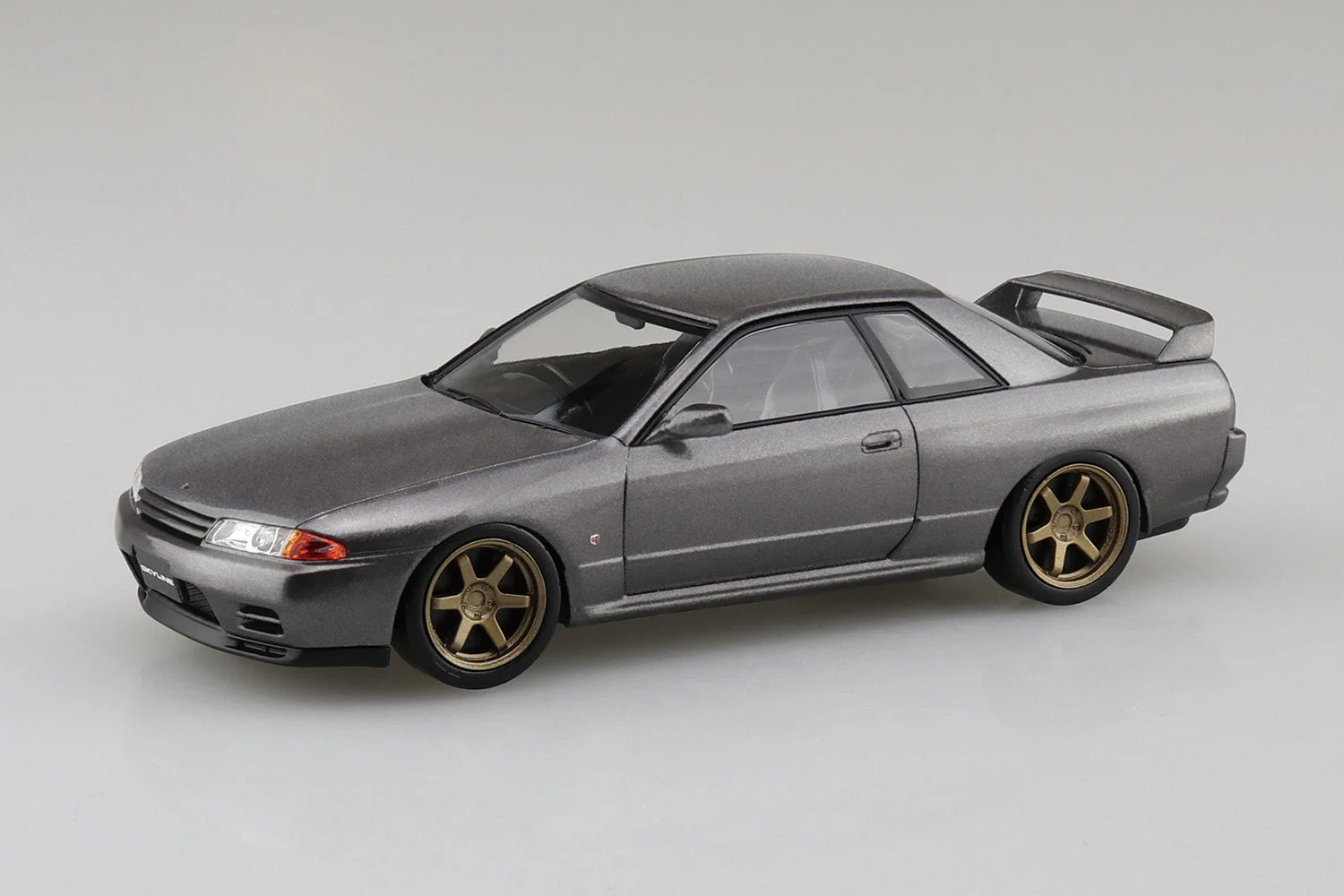 The kit features a Gun Grey Metallic finish and custom wheel design, capturing the aggressive yet elegant style of the R32 GT-R. Its precise body lines, signature front grille, and rear spoiler are all faithfully recreated, while the snap-fit construction ensures a fun and accessible building experience for both beginners and advanced modelers.