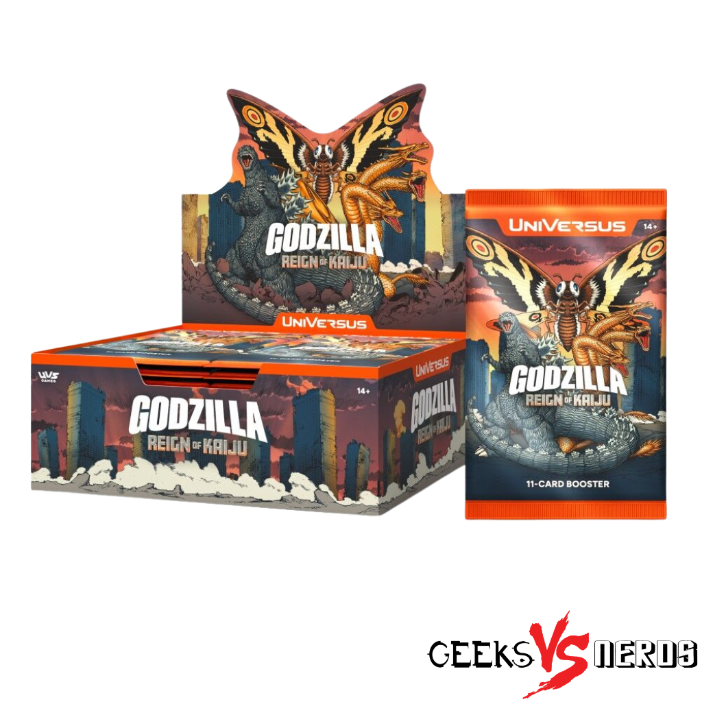 The King of the Monsters storms into the UniVersus Trading Card Game with Godzilla: Reign of Kaiju, a massive booster set packed with legendary kaiju, powerful abilities, and incredible card art. Featuring fan-favourite monsters like Godzilla, Mothra, and King Ghidorah, this set delivers explosive gameplay and must-have collectibles for both players and TCG collectors.